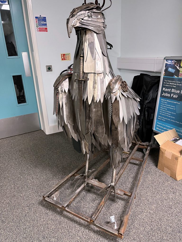 To maintain balance outside of work I started to pursue a hobby entirely separate from policing and learnt to weld. I started by creating small sculptures from cutlery and reclaimed metal found at boot fairs or donated by friends. My early pieces included a fish and an owl, gradually growing in size, eventually to the point where I was banned from bringing them in to the house! Information on other sculptures can be found on my website at ‘secondlifesteel.co.uk